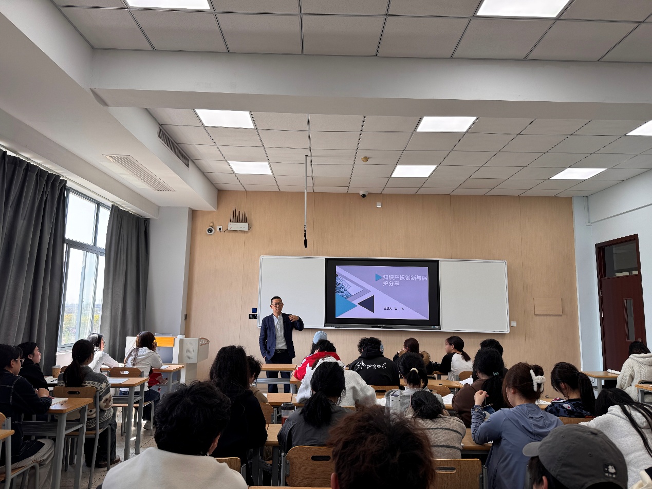 在教学过程中,校内教师首先围绕创新发明的核心理论进行系统串讲,帮助学生夯实基础知识。随后,创业导师钱航结合自身丰富的从业经历,作题为《知识产权保护与创新》的主题讲座,将课堂内容延展至真实的商业一线。作为律师并拥有十余年创业经历的钱航,依托其在知识产权法律领域的多年实践,以大量真实生动的案例,深入浅出地剖析了大学生在创新创业过程中应重点关注的知识产权问题,内容涵盖专利权、商标权、商业秘密保护等。课堂上,学生踊跃提问,互动频繁,课堂氛围热烈,切实体现了“以学生为中心、以能力为导向”的教学理念。
